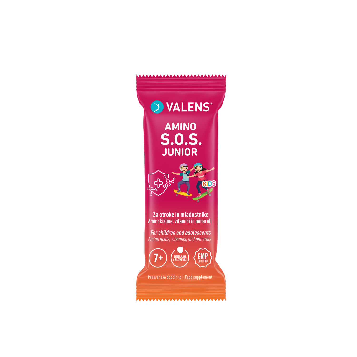 Edinstveno prehransko dopolnilo v obliki vrečk s praškom za pripravo napitka. Namenjeno je otrokom od 7. leta starosti in mladostnikom za podporo imunskemu sistemu in hitrejši regeneraciji telesa. Napredna formula združuje kar 7 aminokislin, 10 vitaminov in 4 minerale – v odmerkih, ki so primerni tudi za otroke.