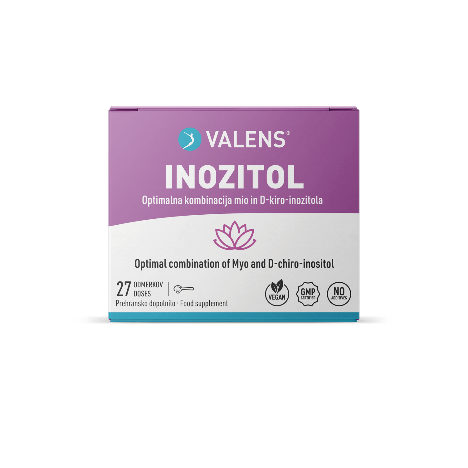 Valens Inozitol v prahu je inovativno prehransko dopolnilo s čistim inozitolom. Vsebuje dve obliki inozitola (mio-inozitol in D-kiro-inozitol) v ustreznem razmerju, ki je znanstveno raziskano. Obe obliki sta pridobljeni iz rastlinskih virov. Izdelek ne vsebuje arom, sladil in drugih dodatkov in ima kljub temu prijeten nevtralen okus. Pakiran je v okolju prijazni embalaži in nima dodane plastične dozirne žličke. Njegova uporaba je enostavna, oblika prahu pa omogoča tudi prilagojeno doziranje glede na vaše potrebe.