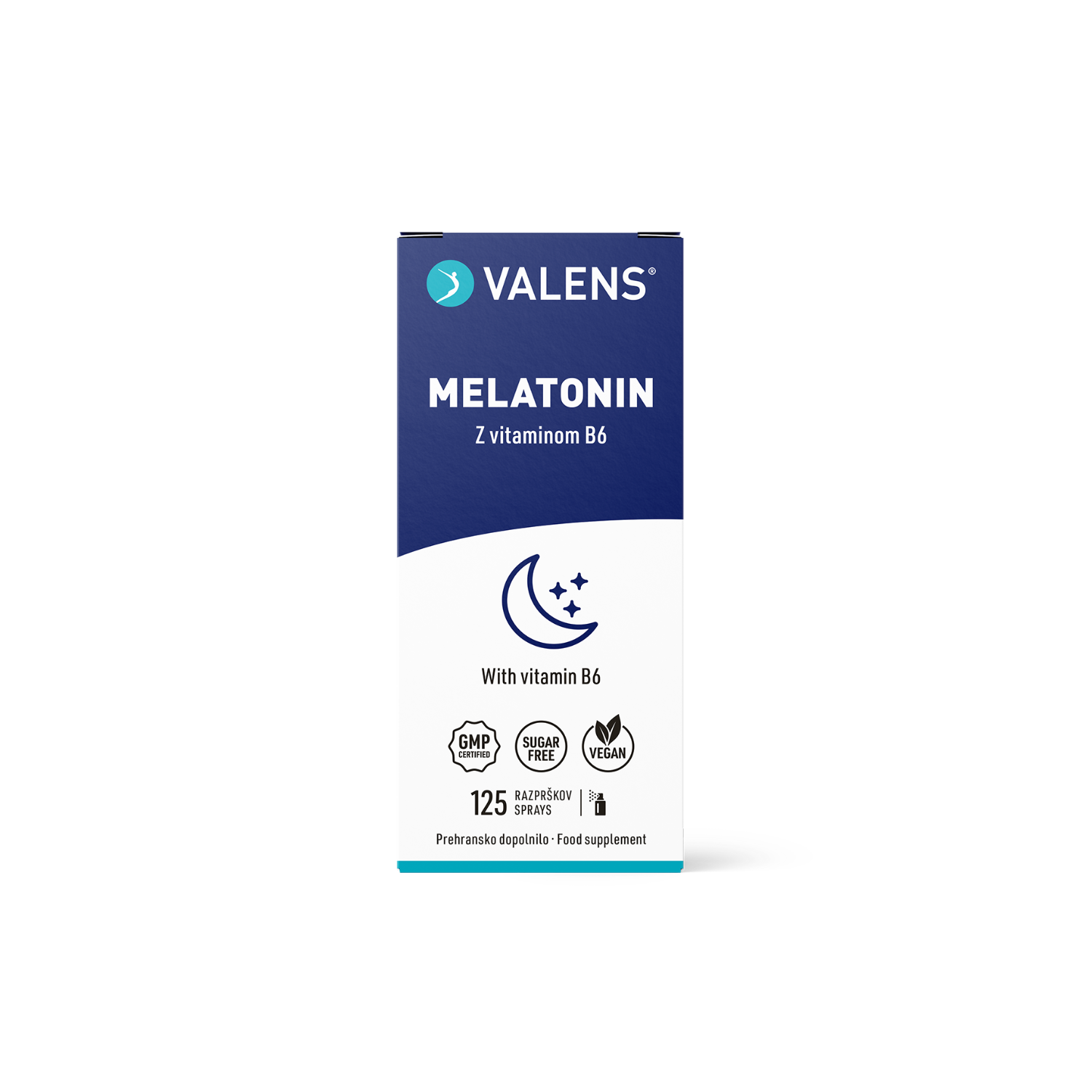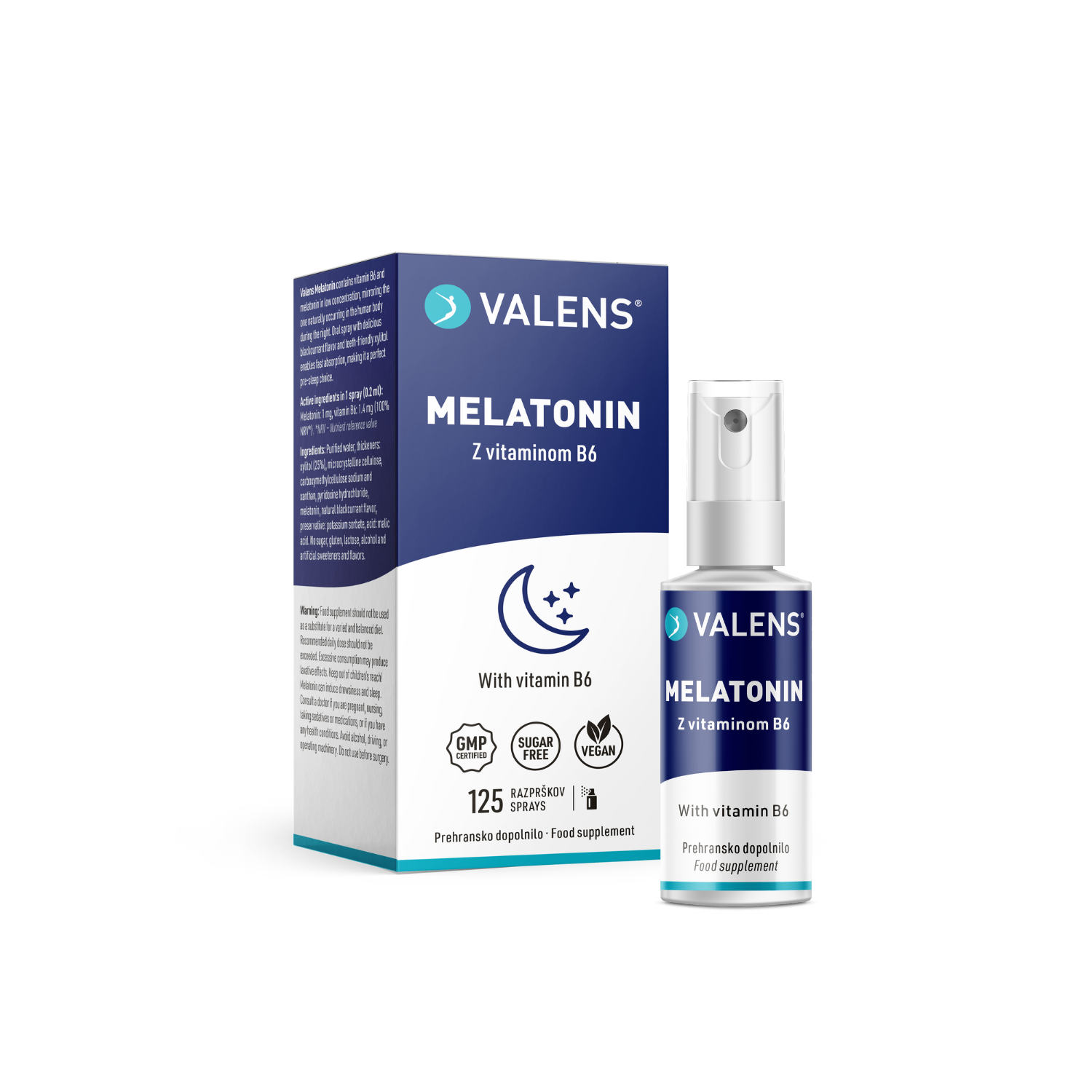 Valens Melatonin je inovativno prehransko dopolnilo v obliki ustnega pršila z odličnim okusom črnega ribeza. Vsebuje melatonin, hormon noči, v koncentraciji, ki ne presega tiste, ki je v našem telesu normalno prisotna ponoči. Izdelek je obogaten še z vitaminom B6, ki ima vlogo pri delovanju živčnega sistema, normalnemu psihološkem delovanju ter zmanjševanju utrujenosti in izčrpanosti. Oblika ustnega pršila ponuja številne prednosti: